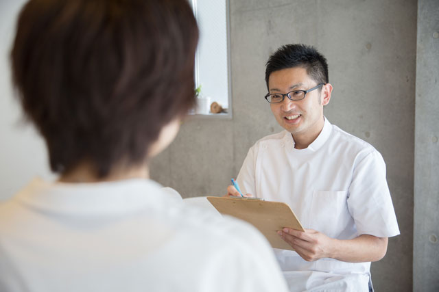 初回は問診表に記入後、体調や生活習慣について問診を行います。