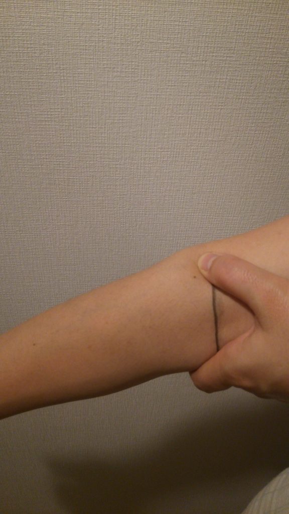 「尺沢」は肘を曲げた時にできるシワの上、親指側にある筋肉の外側にある凹みにあり、「孔最」は尺沢から手首に向かい、指4本分下がった凹みにあるツボです。