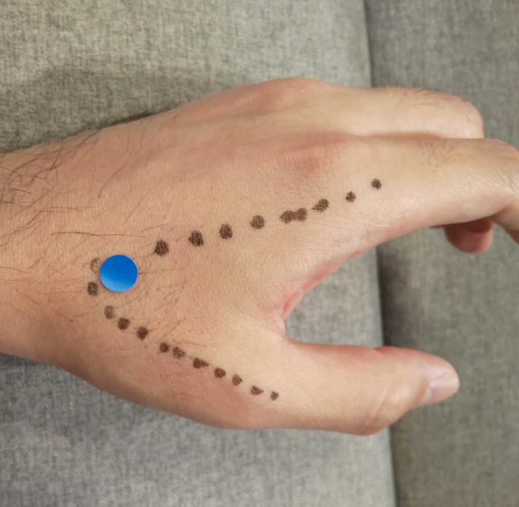 ストレスで乱れた自律神経の機能を正常に戻す働きがあり、気持ちを落ち着かせる効果のあるツボ。人差し指と親指の骨が交わる部分のくぼみにある。